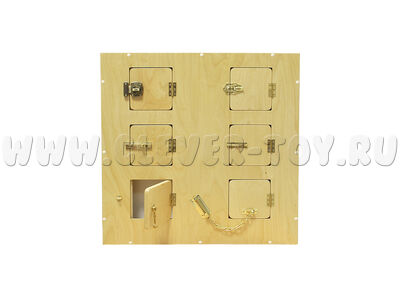 - Настенный модyль с 6 замочками и задвижками. Развивает зрительно-моторную координацию, умение действовать двумя руками, понимание постоянства объектов и последовательности действий.