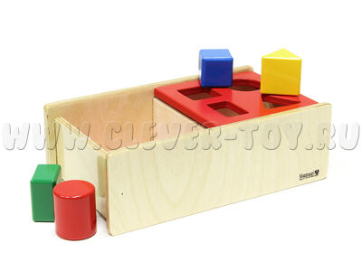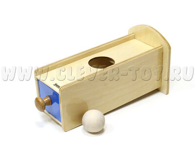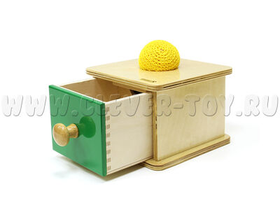 - Коробочки с вязаным мячиком, выдвижным ящичком, с геометрическими телами и другие. Игрушки для развития зрительно-моторной координации, умения действовать двумя руками и понимания постоянства объектов.