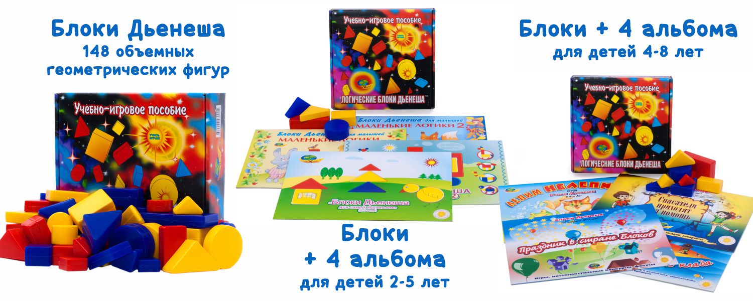 В нашем ассортименте можно найти Логические блоки Дьенеша отдельной позицией, так и в наборе с альбомами заданий для детей 2-5 и 4-8 лет. Тут вся информация.