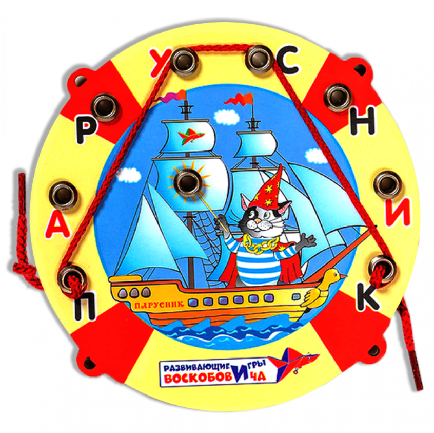 Игра – шнуровка «Парусник»: Игра развивает внимание, память, логическое и творческое мышление, воображение, расширяет словарный запас, тренирует мелкую моторику рук. Сначала ребенок будет знакомиться с буквами и слогами, следующим этапом, вместе с ребенком вы можете составлять разные слова и учится их читать.