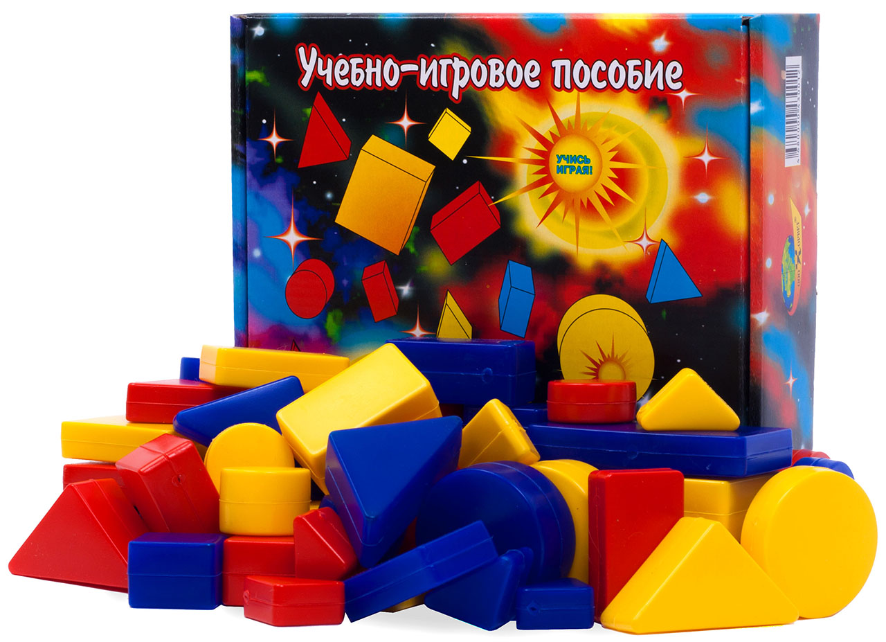 Логические блоки Дьенеша : Набор логических блоков состоит из 48 объемных геометрических фигур, различающихся по цвету, форме, размеру и толщине. Таким образом, каждая фигура характеризуется четырьмя свойствами. В наборе нет даже двух фигур, одинаковых по всем свойствам. Основная цель - научить ребенка решать логические задачи на разбиение по свойствам.