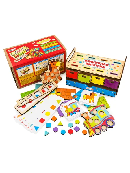 Волшебная шкатулка. «А ларчик просто открывался…» А в ларчике столько интересного и познавательного! Обучающая игра, совмещающая в себе несколько игр. В процессе игры ребенок развивает мелкую моторику и логику. Занимаясь с волшебной шкатулкой, ребенок познакомится с геометрическими фигурами и цветами, научится считать, сортировать, повторять заданную последовательность, изучать закономерности.