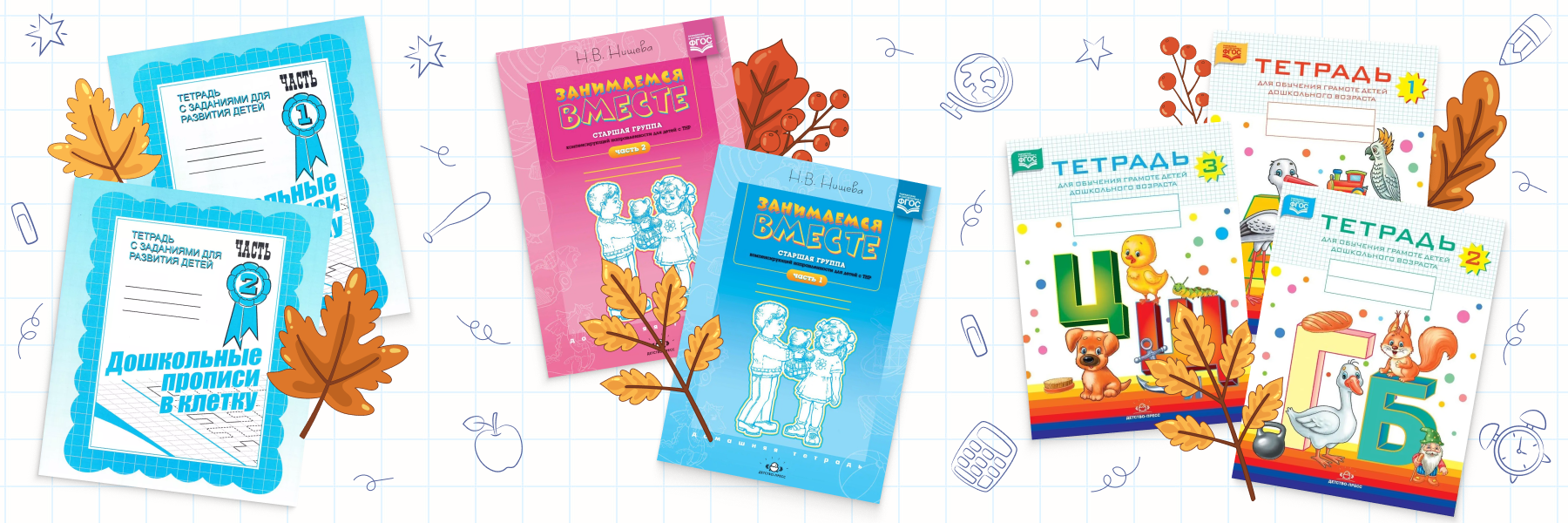 - Набор рабочих тетрадей для обучения грамоте детей дошкольного возраста