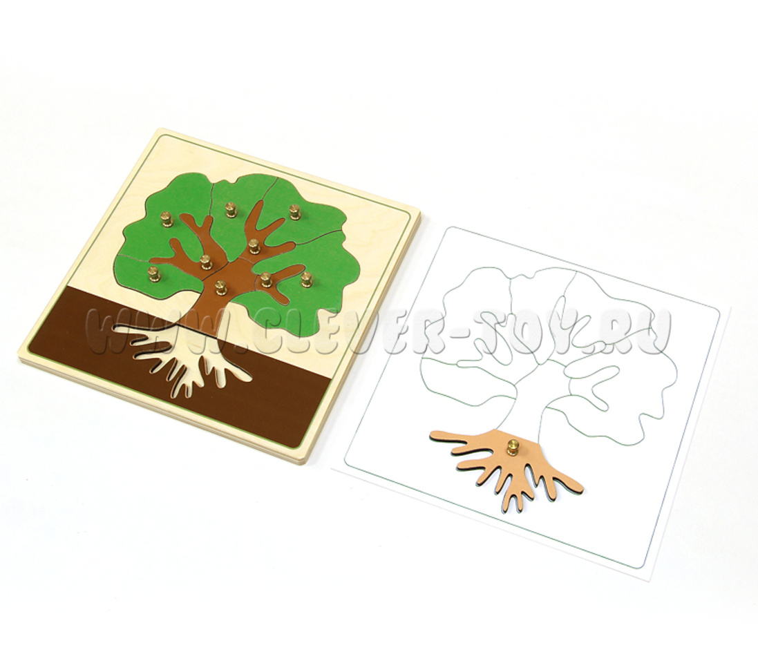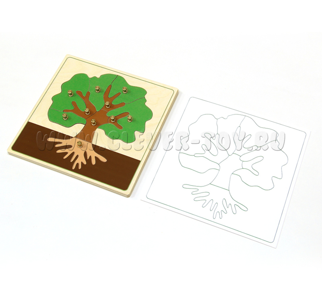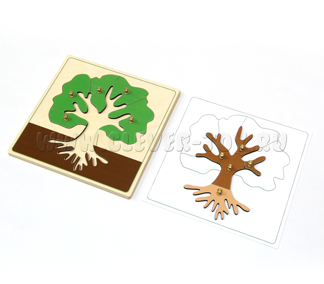 Знакомство со строением дерева путем составления целого из частей и проговаривания их названий способствует развитию речи, увеличению словарного запаса и формированию восприятия формы.