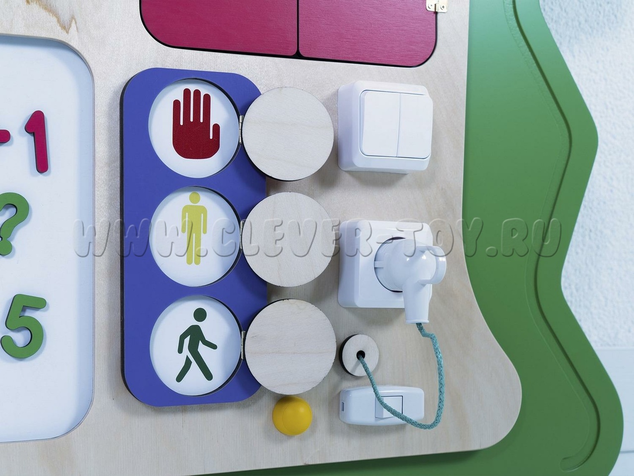 Основная цель бизибордов - помочь детям безопасно освоить предметы быта (замки, крепления, механизмы, переключатели, розетки) и развить мелкую моторику. Используя обесточенные тренажёры с яркими рисунками, дети улучшают свои навыки и готовятся применять их на практике.