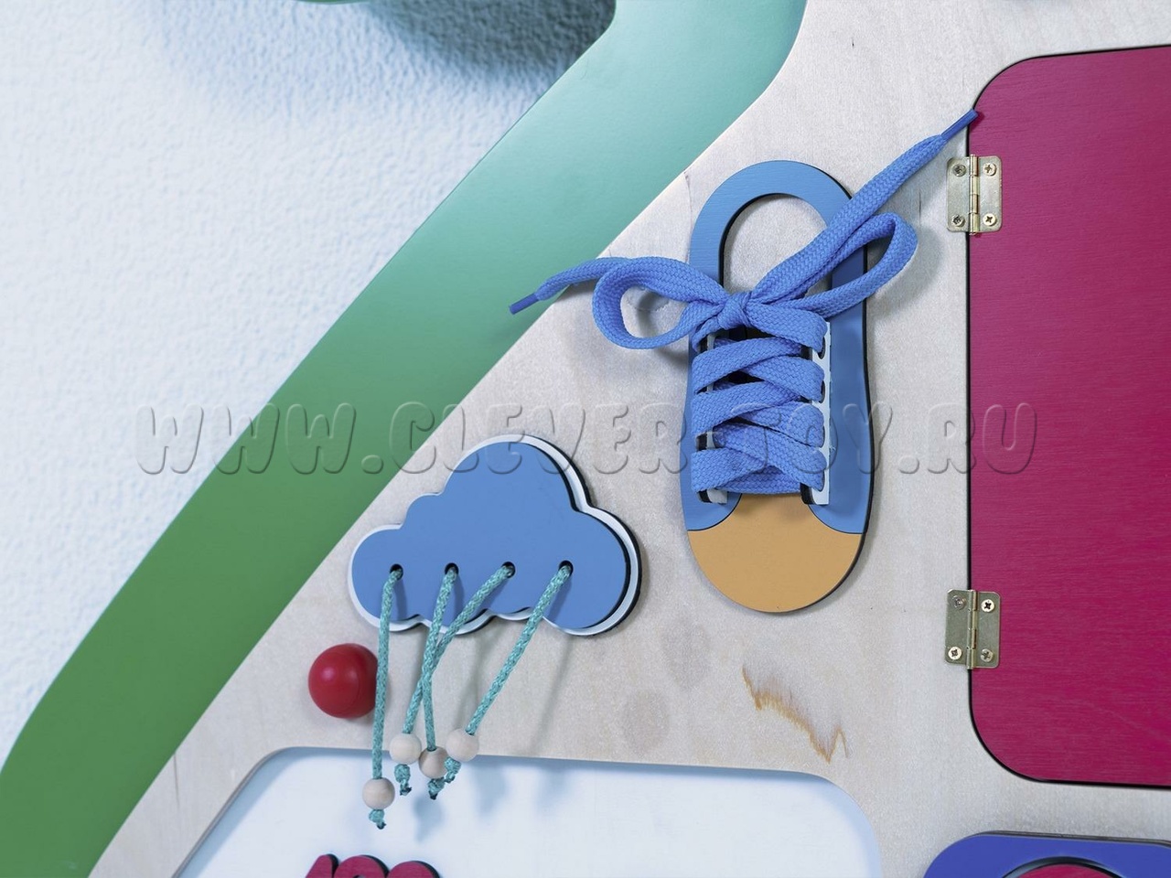 Бизиборд "Крамп" предназначен для детских образовательных учреждений и помогает изучать геометрические фигуры (форму, количество углов, вид, цвет и особенности). Задания составлены по принципу "от простого к сложному". Например, при изучении геометрических фигур можно тренироваться в счёте, определяя количество углов. Также можно рисовать запомнившиеся фигуры или играть в крестики-нолики, вращая фигуры.