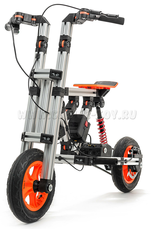 Из одного набора можно создать множество механизмов. Собрав одну модель (например, самокат) и прокатившись на нем, вы можете разобрать его и собрать что-то другое. Bigo подобен Лего, но больше по размеру и позволяет создавать не только статические модели, но и движущиеся объекты, которые можно катать или самому кататься на них. Позволяет собирать своими руками самокаты, твистеркаты, велосипеды, велотрайки, веломобили на педальном приводе и другие механизмы.