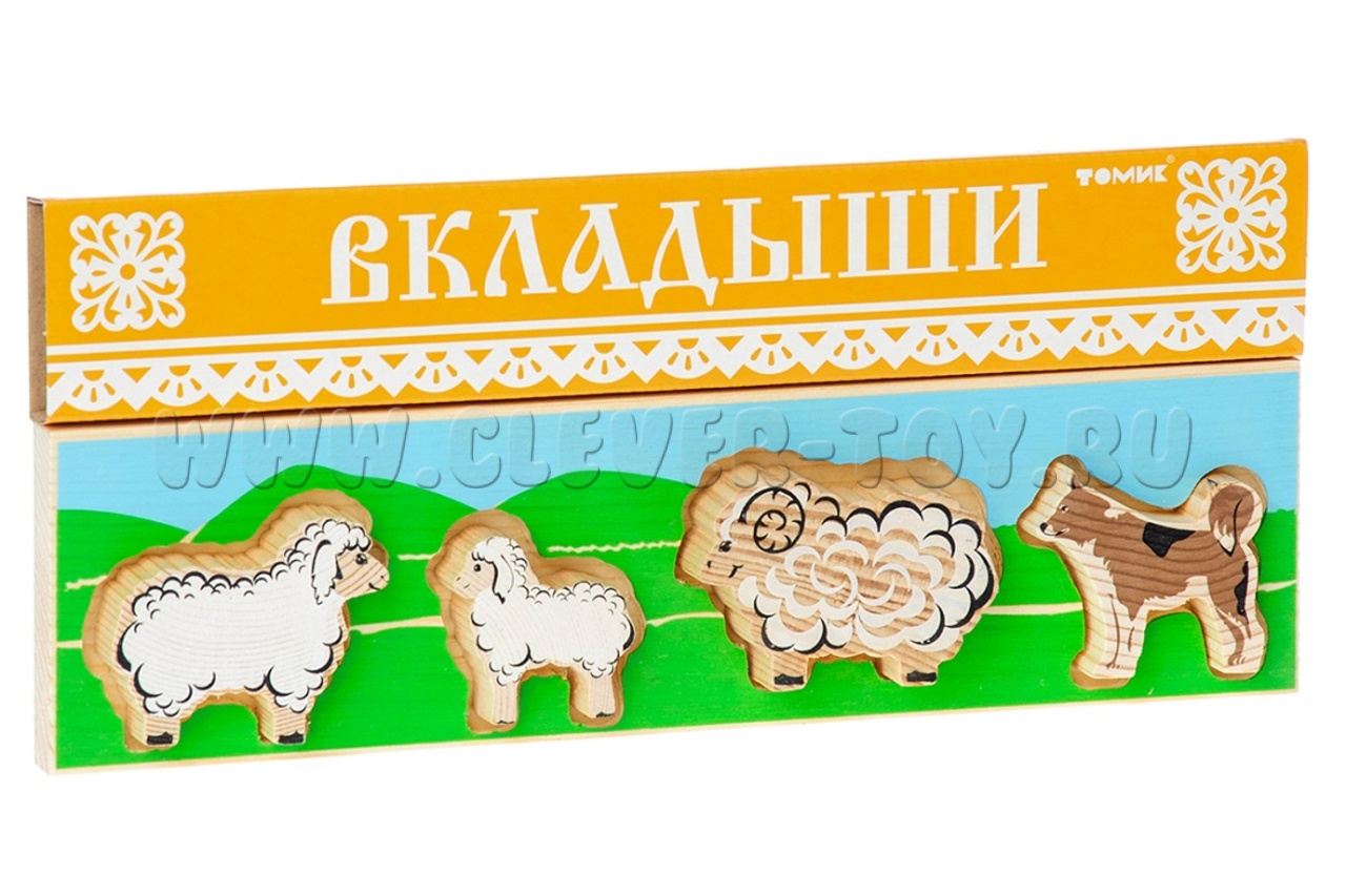 Планшет состоит из 4 вкладышей с изображениями 3 овечек разного размера и четвероногого сторожа.