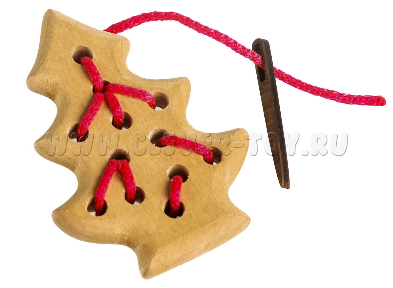 Состоит из иголки, шнурка, елочки с 12 отверстиями.