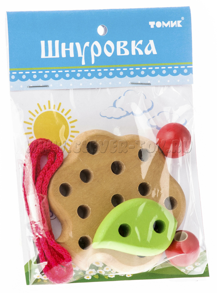 Состоит из иголки, шнурка, лепестка, 2 яблочек и яблони с 13 отверстиями.