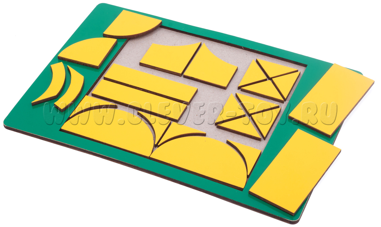 Головоломка Джунгли представляет собой квадрат разделенный на 24 элемента различных форм. Игра включает в себя набор заданий с различным уровнем сложности, чтобы ребенок мог постепенно развивать свои умственные и творческие способности.