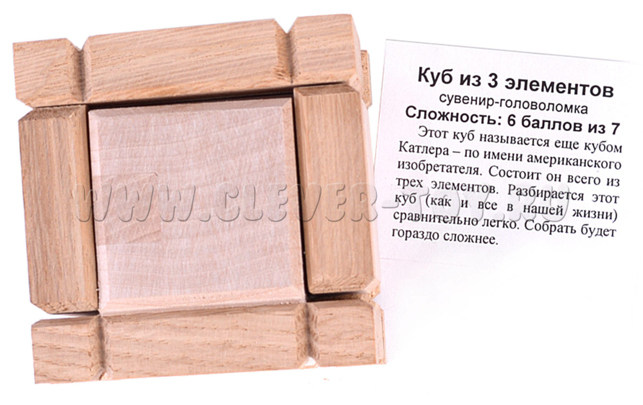 Интересный резной кубик Катлера хранит в себе секрет. Попробуй разобрать эту головоломку, а потом собрать снова. Конечно, может показаться что это просто, ведь в нем всего три элемента.