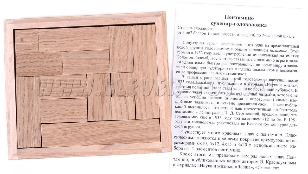 “Пентамино” - это головоломка, состоящая из 12 различных фигур, каждая из которых образована квадратными блоками.