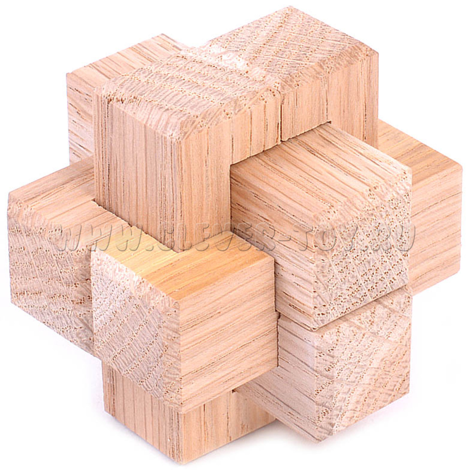 Взгляд на головоломку сбоку показывает, что она состоит из трех пар элементов, каждая из которых пересекается под углом 90 градусов. Именно этот критерий и помогает правильно собрать головоломку.