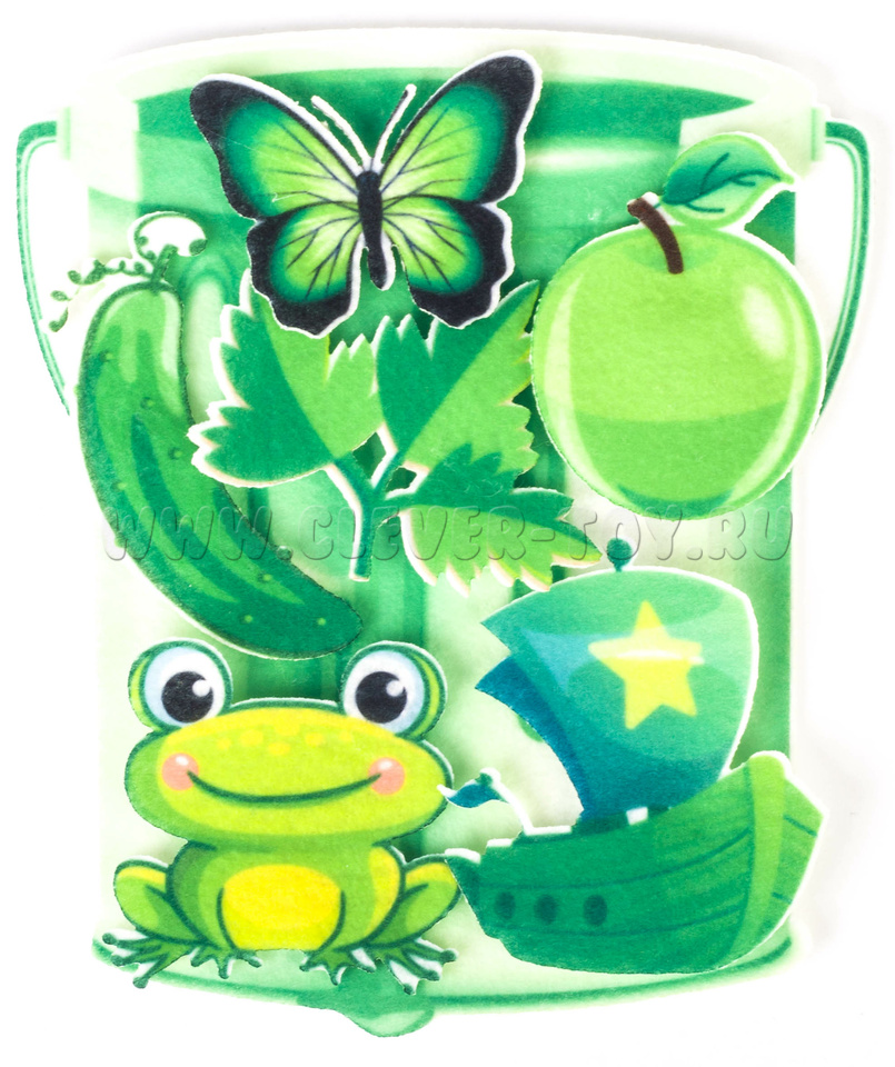 - 12 фетровых фигуры с изображением разноцветных ведёрок,