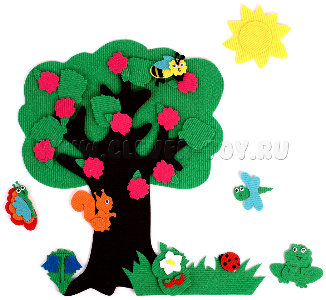 - растения – груша, яблоко, клубника, шиповник, крона жёлтая, крона зелёная, ствол дерева, листочки зелёные, красные, жёлтые, цветочки – 10 шт.;
