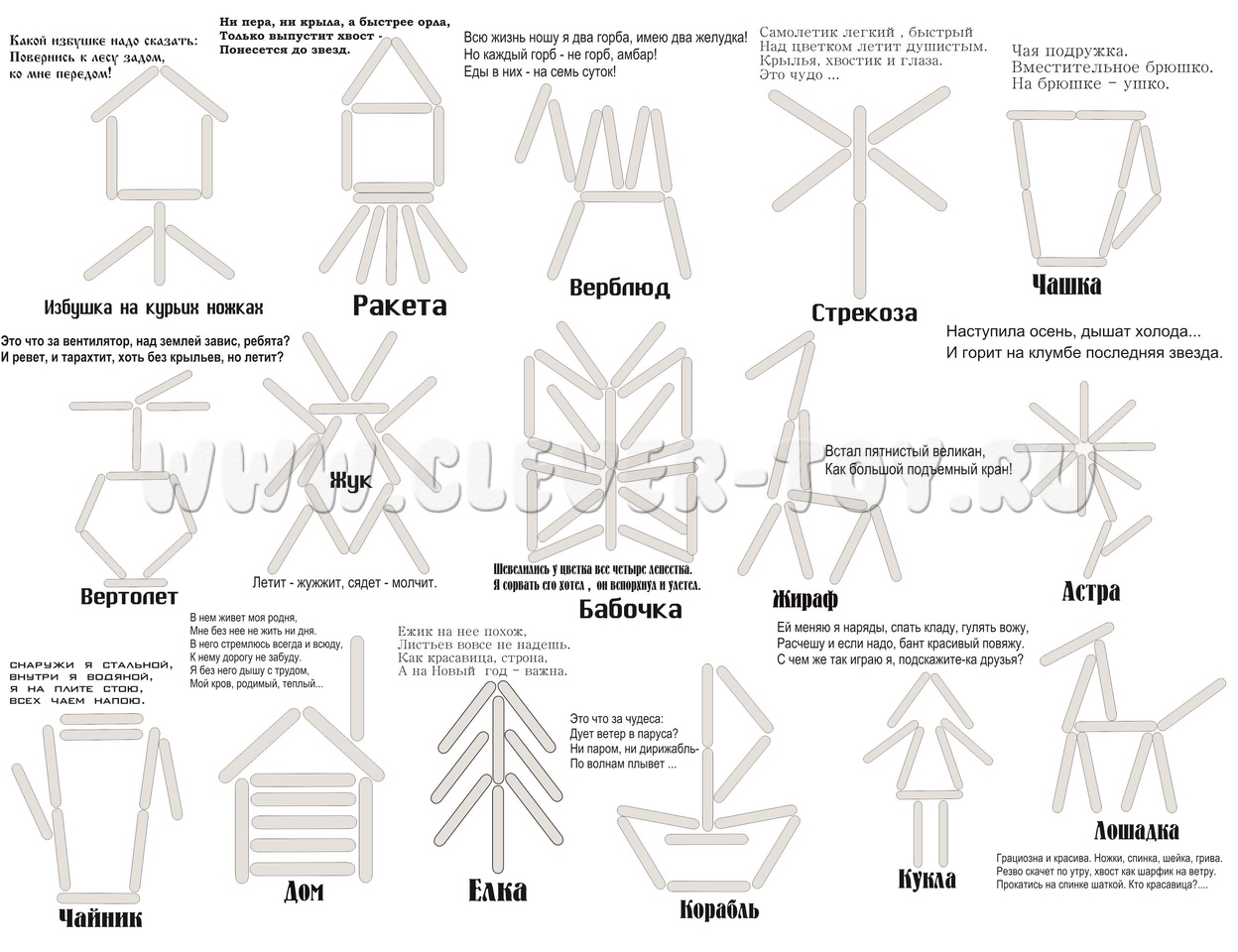 3. Выкладывайте из палочек различные силуэты животных, автомобилей, предметов быта и т.д.