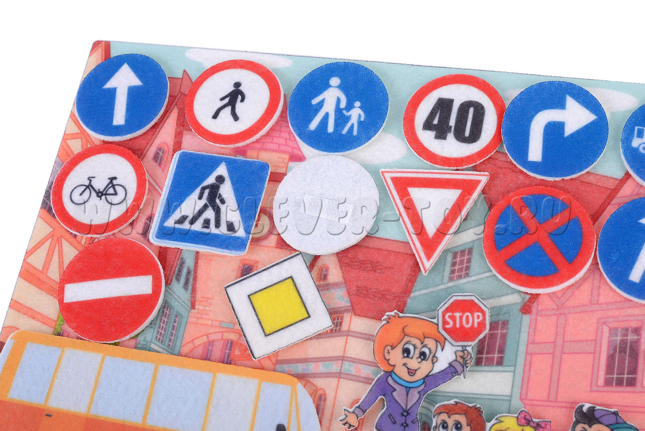 С помощью инструкции, входящей в набор, родители смогут заниматься с детьми 3-4 лет и старше, постепенно усложняя задания. К примеру, запоминать и отличать знаки, группировать их по признакам, выстраивать обучающие дорожные ситуации на плоскости. Игра подходит для девочек и мальчиков.
