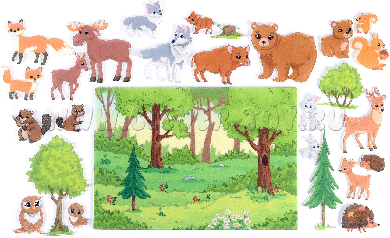 - Развитие знаний о природе: Набор позволяет детям узнать о разнообразных лесных животных, их внешнем виде и привычках, способствуя расширению их знаний о животном мире.