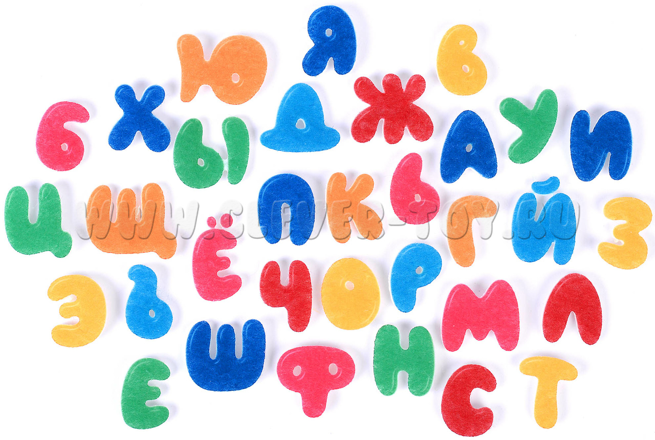 • 33 буквы на липучках синего, голубого, красного, зелёного, жёлтого и оранжевого цветов;