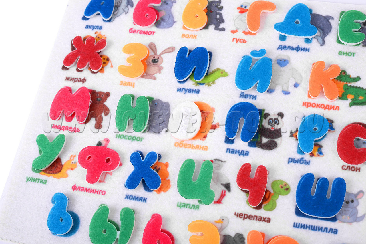 Все буковки оснащены многоразовыми липучками, благодаря которым они легко крепятся на игровом поле из фетра или ковролина.