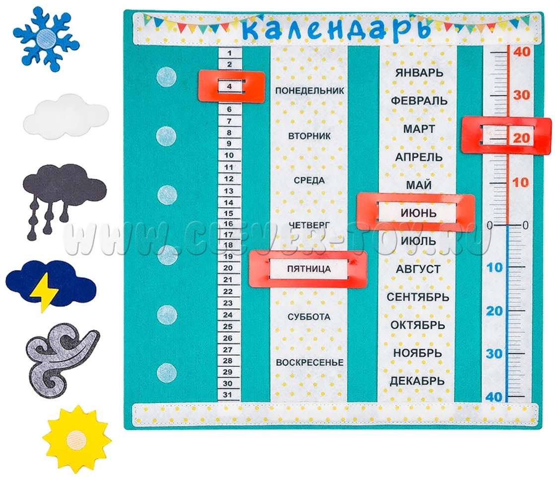 Как играть? Предложите ребенку каждый новый день начинать с календаря. Попросите ребенка назвать, какое сейчас время года, месяц, день недели, какая за окном погода, уточните, какую температуру показывает термометр за окном.