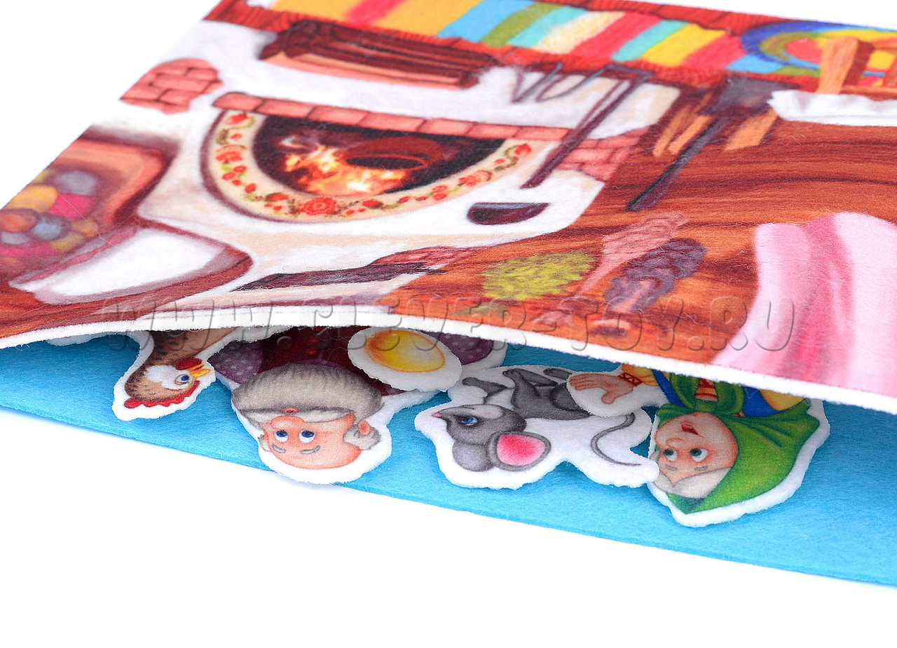 Модифицированный вариант детской сказки в игровое пособие из фетра принесет не мала удовольствия детям. Игра выполнена из фетра с нанесением безопасных и ярких красок. Она выполнена из прочного материала, который не порвется во время игры. Многоразовые липучки позволят не ограничиваться в своих фантазиях.