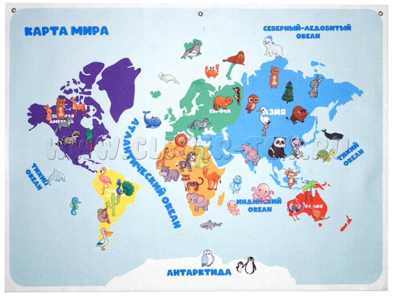 «Карта мира» — это увлекательная развивающая игра для детей дошкольного возраста, которая поможет им познакомиться с географией и окружающим миром. В комплект игры входит игровое поле размером 80x60 см с изображением карты мира и различные элементы с изображением материков, животных, достопримечательностей и других объектов.