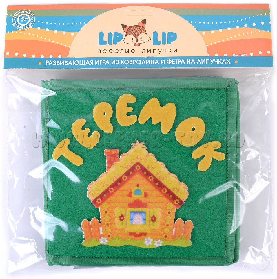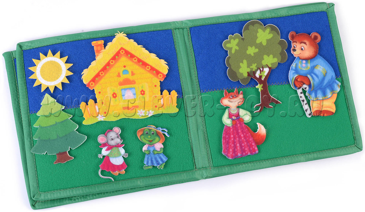 Авторская развивающая книга из ковролина с фигурами на липучках от российской компании «Lip-Lip» по мотивам русской народной сказки «Теремок». Ручная работа.