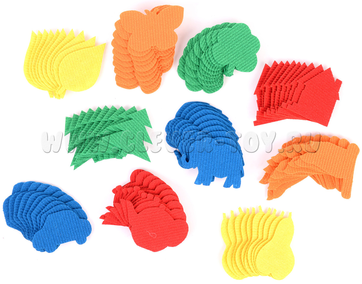 В набор входит 100 игровых элементов, по 10 штук каждого вида: