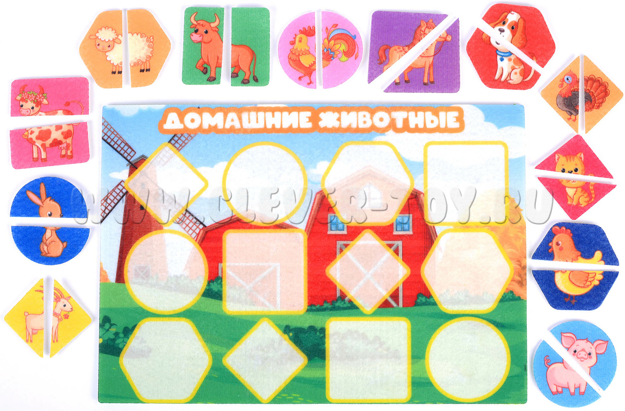 Развивающая игра-конструктор из фетра "Собери домашних животных".