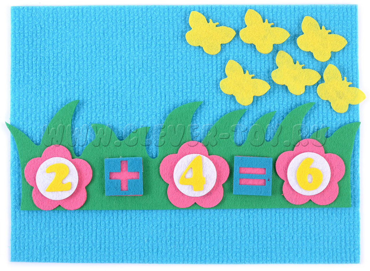 • Набор из 36 фигурок (бабочки, листики, цифры, знаки, трава),