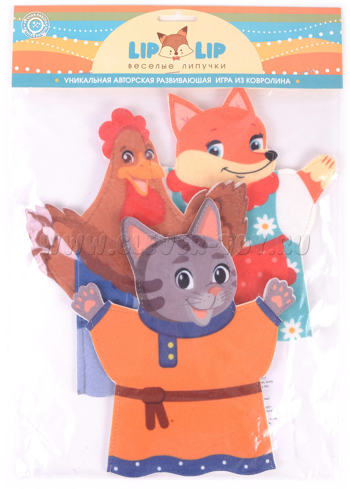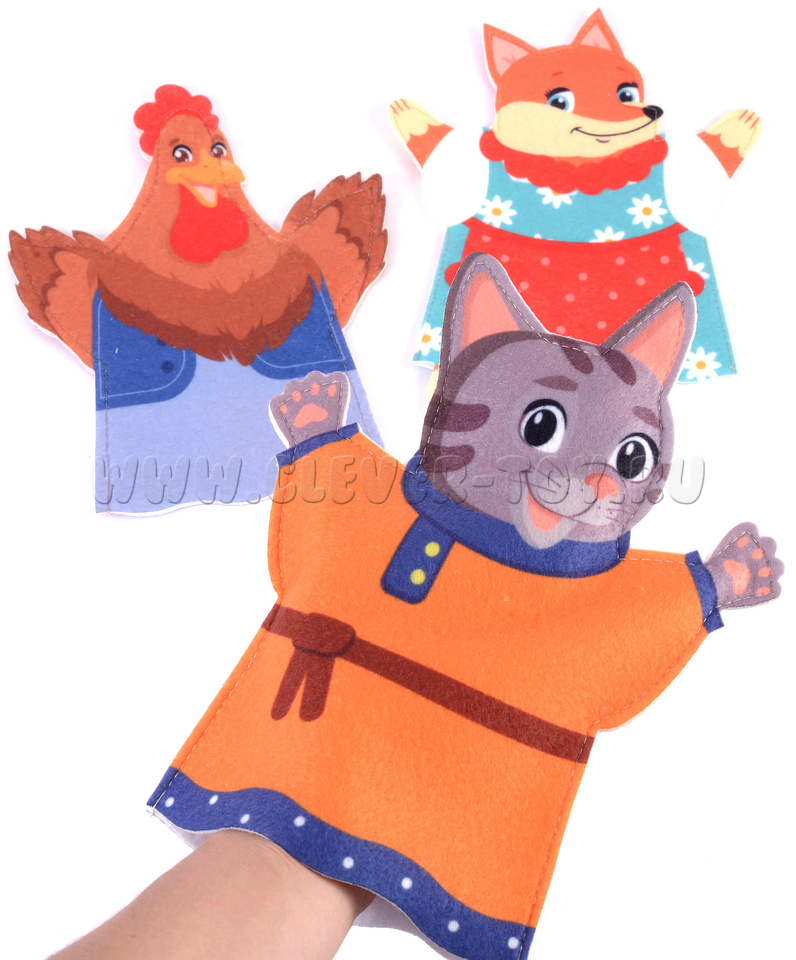 Театр на руку "Кот, петух, лиса" фетр (3 детали)