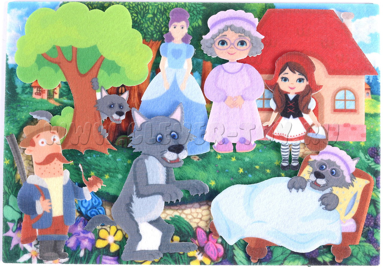 - Фигурки персонажей: Красной Шапочки, бабушки, волка в двух образах, мамы и охотника (6 шт.).