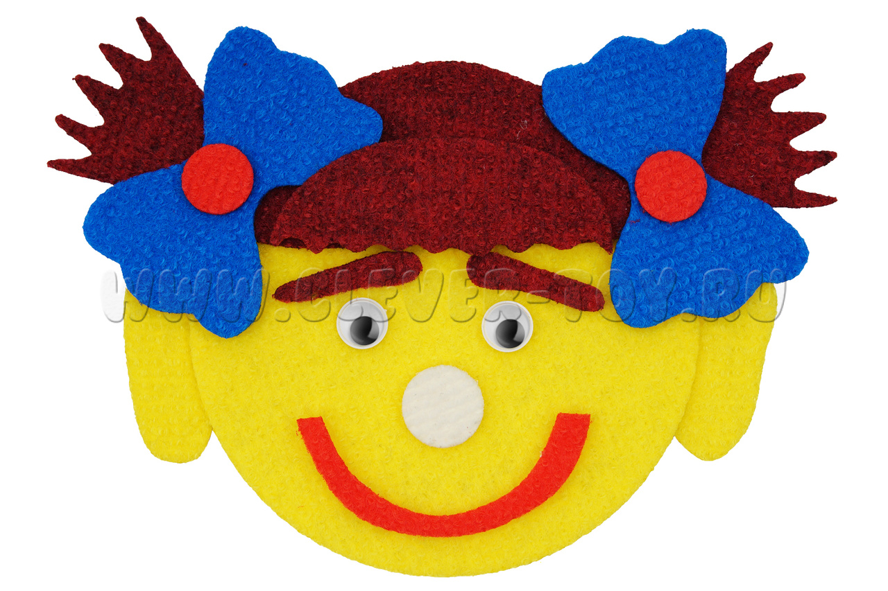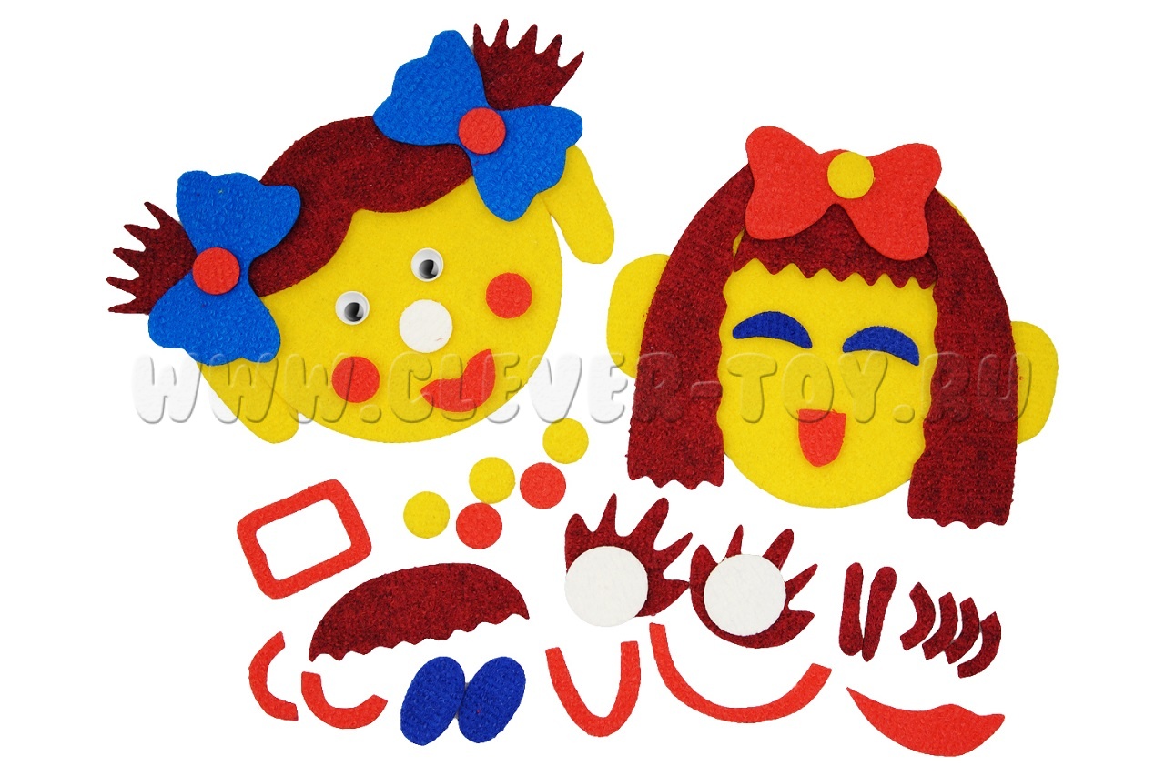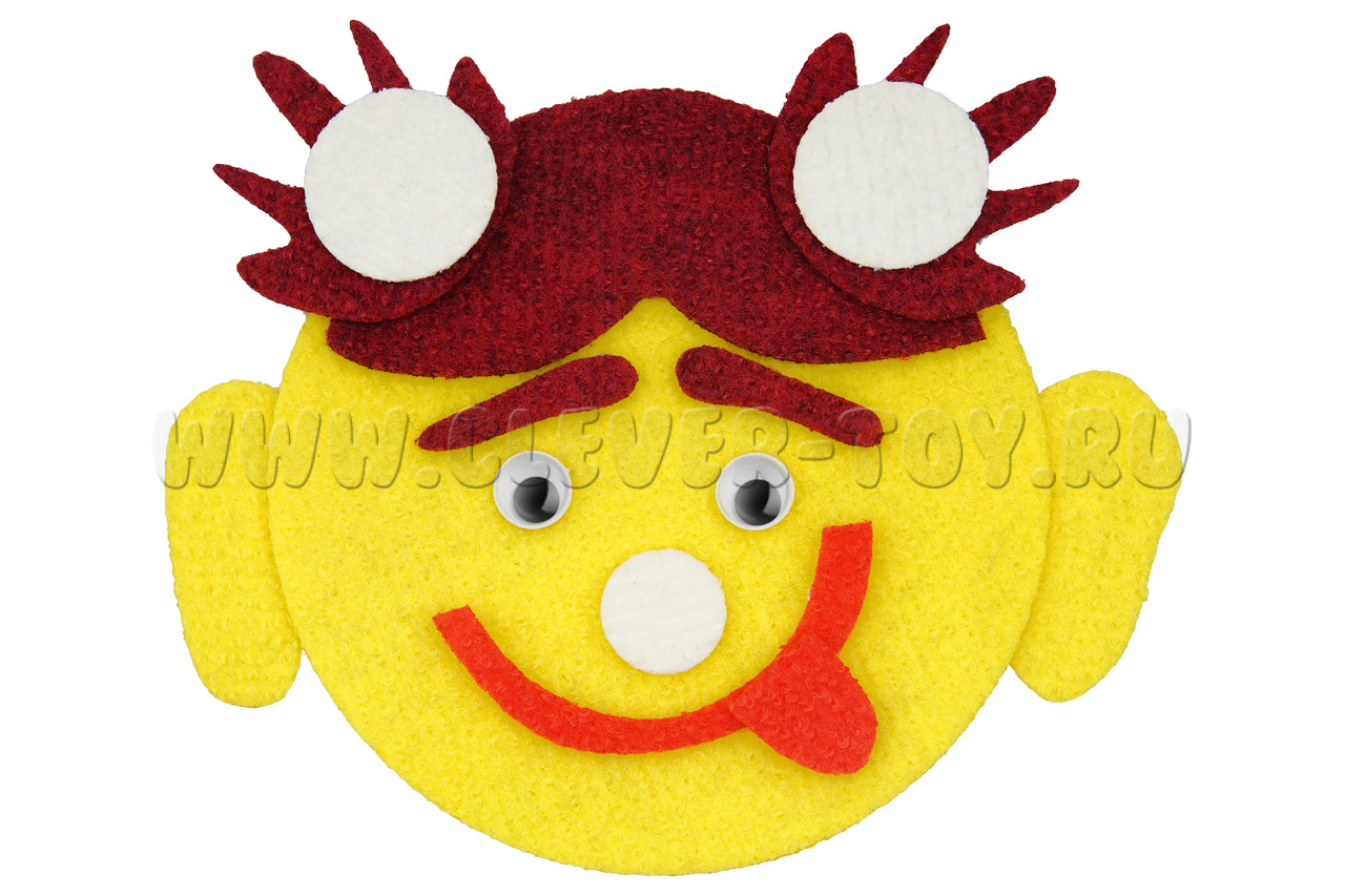• игровые элементы разных размеров, цветов и форм на многоразовых липучках: овалы лица, уши, губы, волосы, брови, носики, усы, хвостики с бантиками;