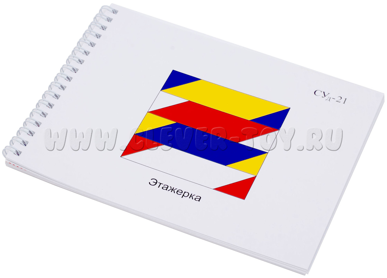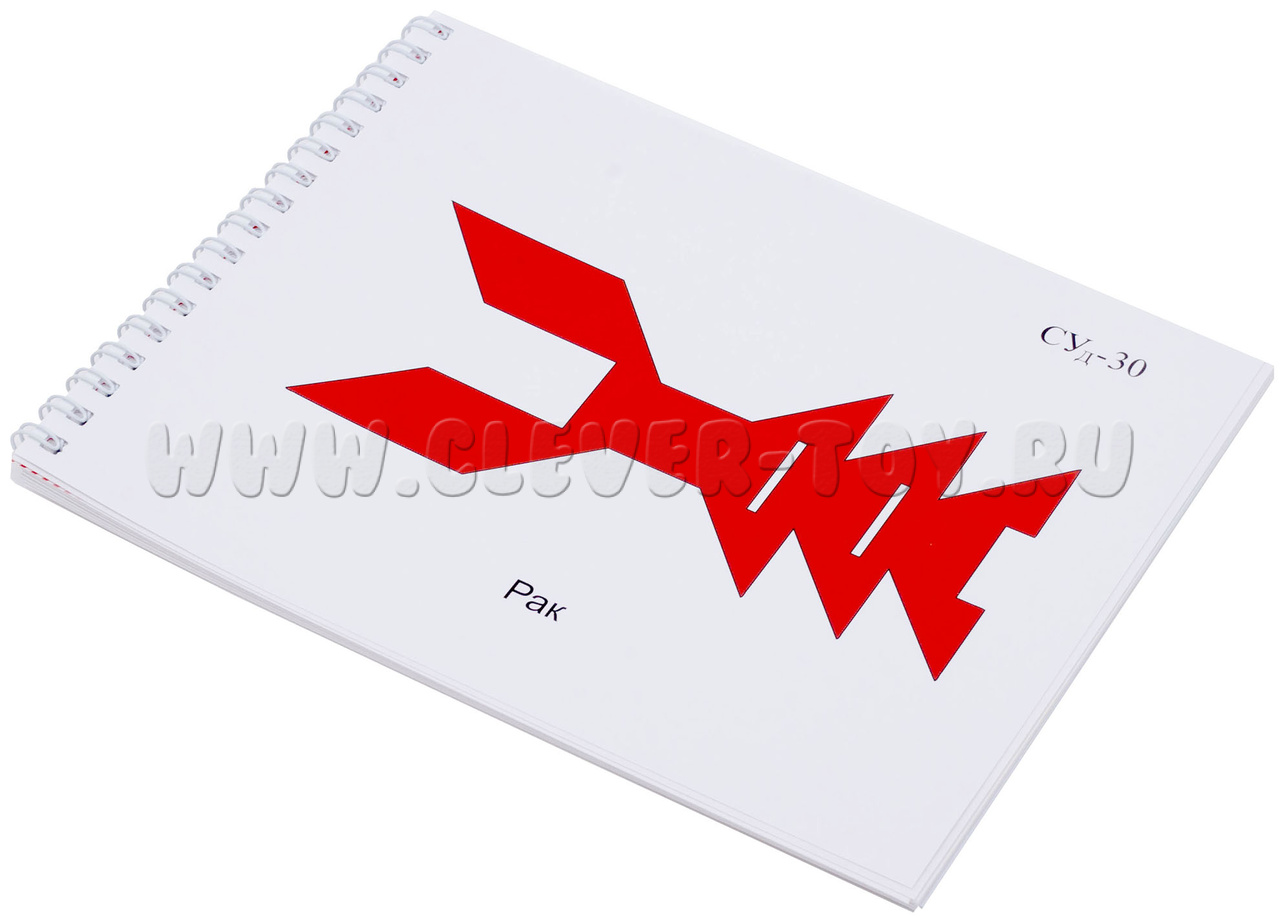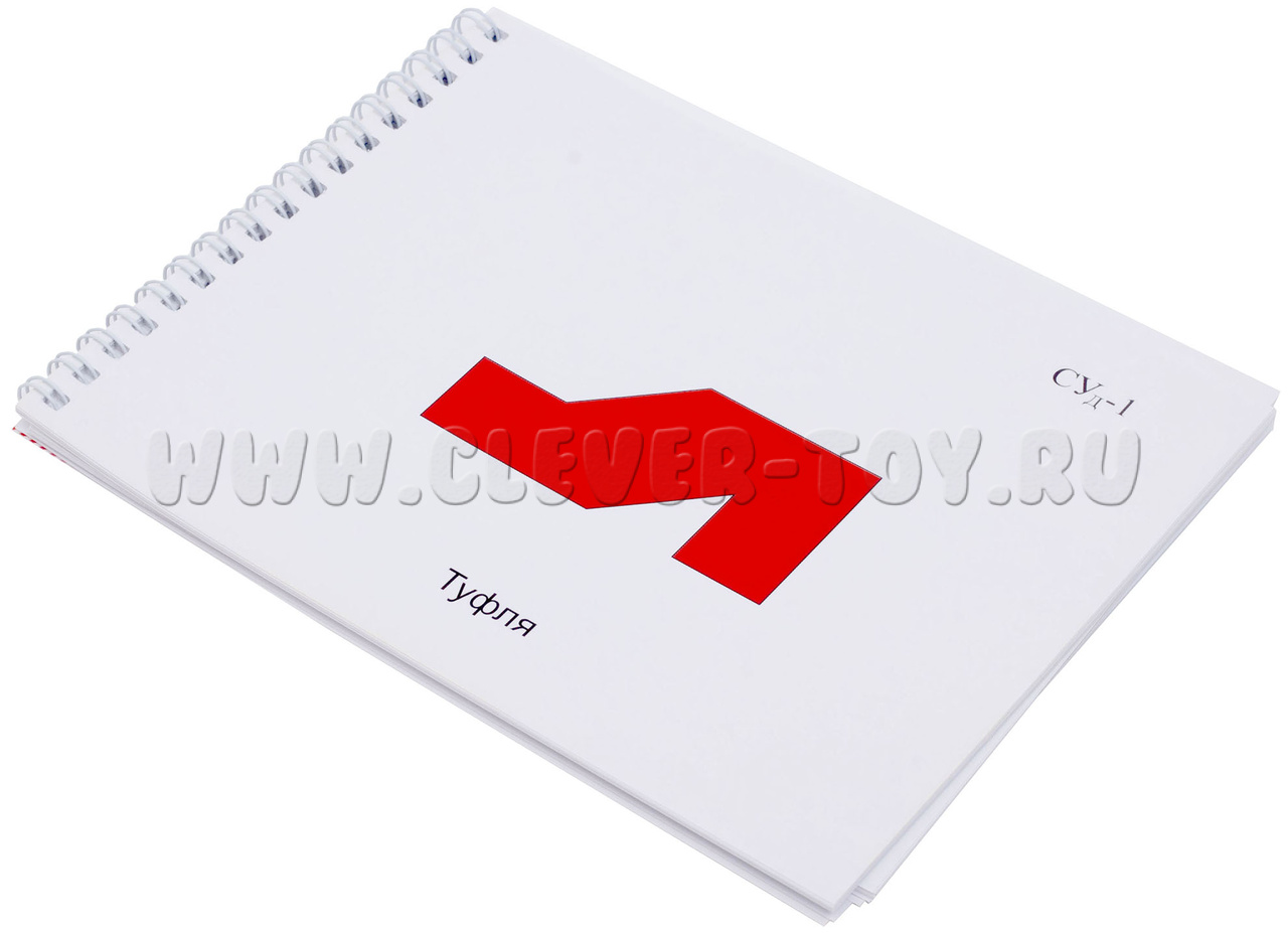 Альбом с заданиями к игре "Сложи узор" серия А содержит 30 заданий для сборки фигур. Каждое задание расположено на отдельной странице в масштабе 1:1,5