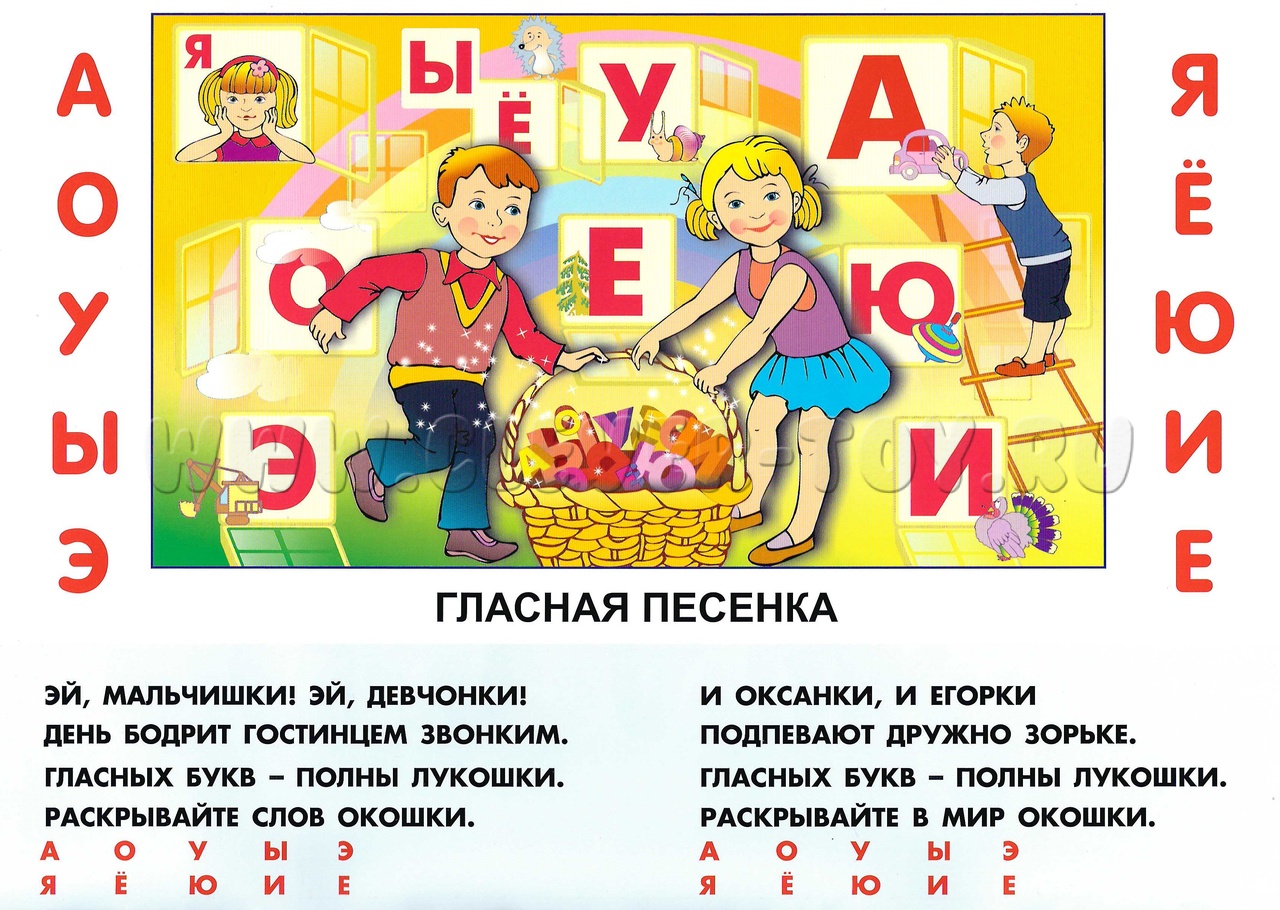 • Буквенный. Вместе с ребёнком Вы рассматриваете рисунки, читаете стихи, поёте песенки, придумываете сказки. На этом этапе особое внимание стоит обратить на гласные буквы и на буквы, которые определяют песенки слияния (Б, В, П, Р, Г и т.д. – согласные главные буквы).