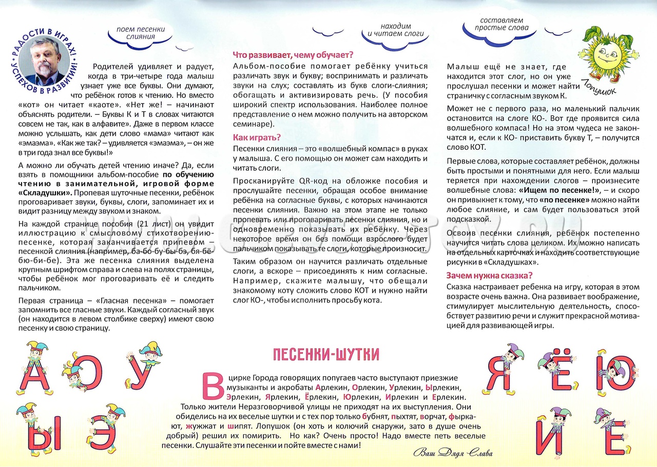 Складушки (слоги-песенки) Игровое пособие по обучению чтению, тренажёр по чтению