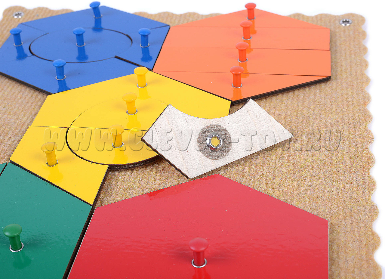 • Соты: целая – красного цвета, из 2-х частей – зелёного, из 4-х частей – оранжевого цвета; из 5-ти частей – жёлтого и синего цвета.