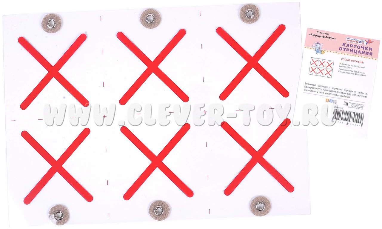 Карточки на прозрачной пластиковой основе с красным крестиком – 6 шт.