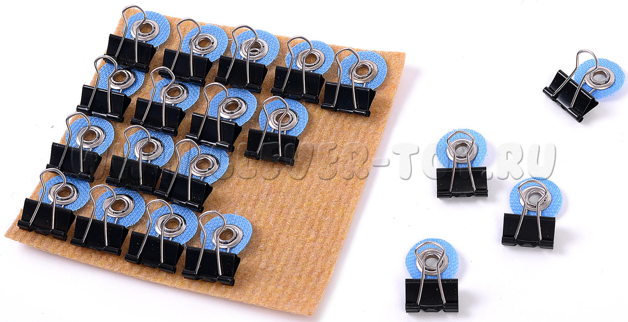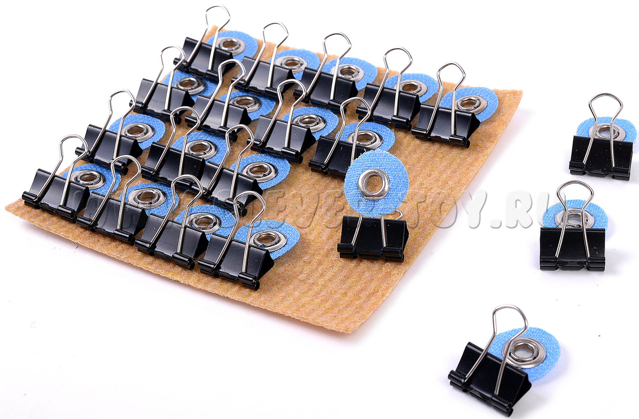 Зажимы состоят из металлических зажимов, закреплённых на липучке.