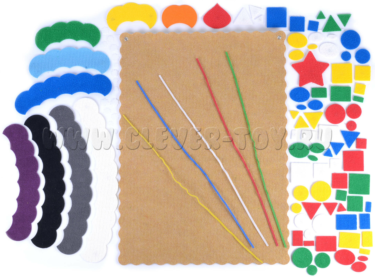 • фигуры из ковролина (круг, квадрат, треугольник, овал прямоугольник) 3 размеров по 5 шт;