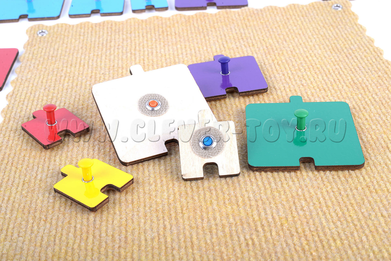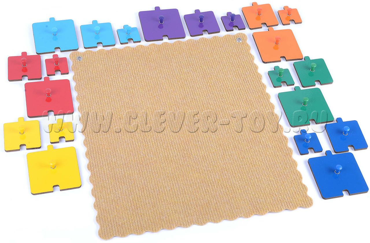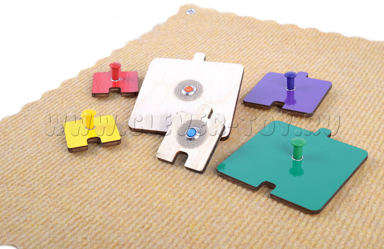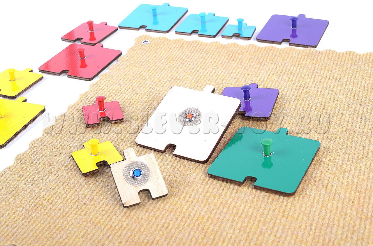 Дети складывают фигурки на столе или прикрепляют их к коврографу. Малыши от 1,5 до 2 лет играют с комплектом фигурок 4-х цветов: красного, зелёного, синего и жёлтого.