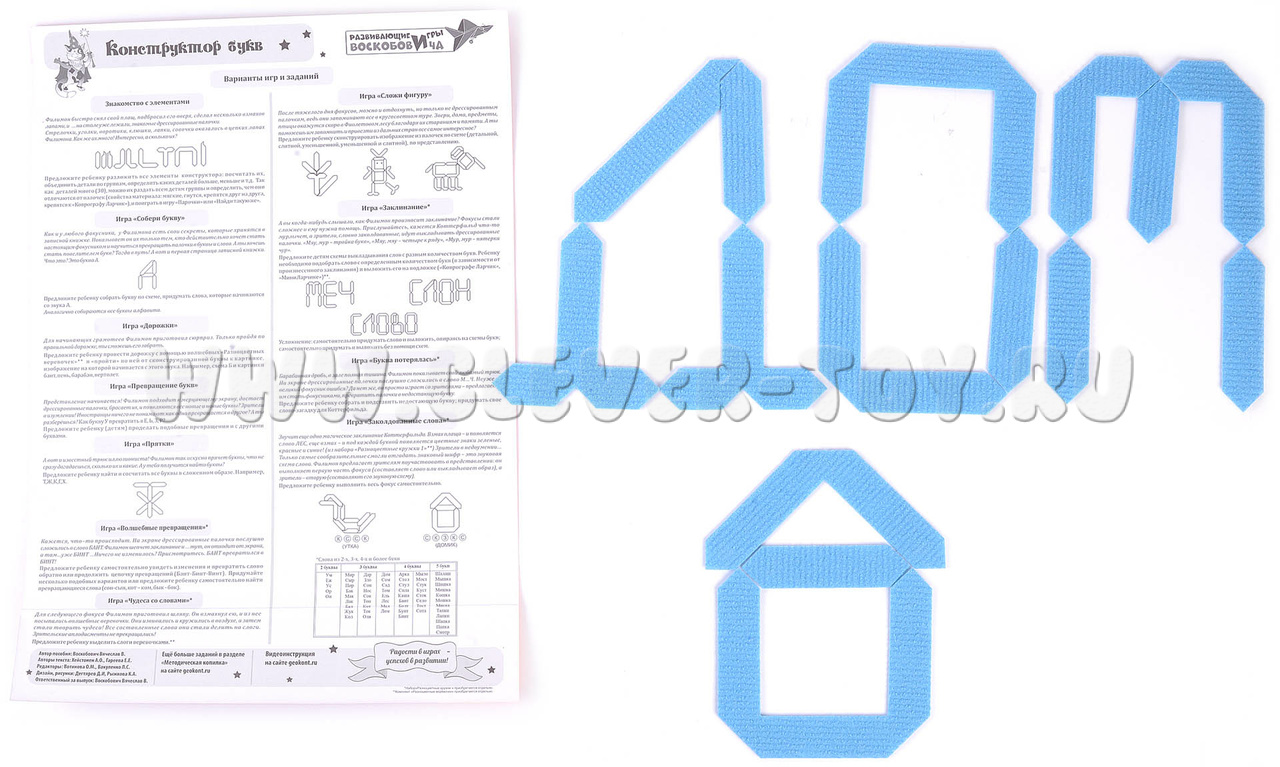 - увеличенная комплектация, позволяющая сконструировать не только одну букву, но и слоги, слова, состоящие из 2-6 букв,