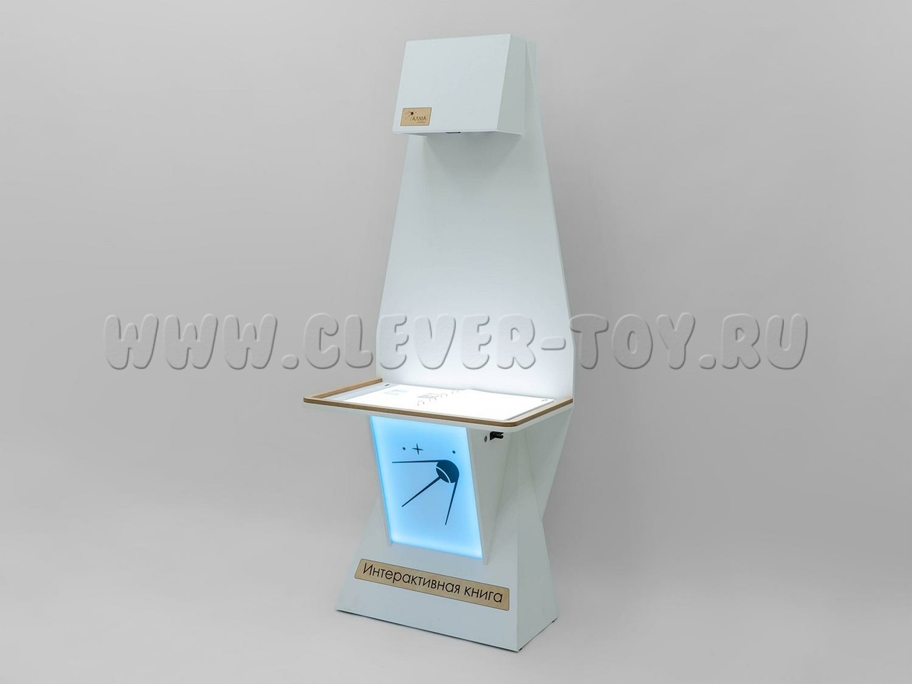 Интерактивная проекционная книга "ИНТЕРЛИСТ" с проектором, светодиодной подсветкой, встроенным компьютером и физическими пластиковыми листами. На листы проецируются страницы книг, загруженных или созданных в редакторе. При перелистывании страницы меняются в соответствии с номером листа.