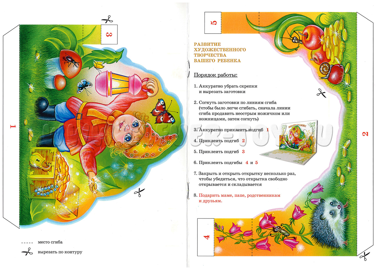 • Оригинальный результат- объёмная открытка станет уникальным подарком для близких.