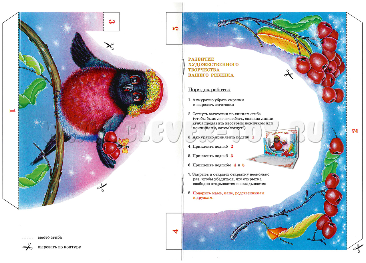 • Оригинальный результат- объёмная открытка станет уникальным подарком для близких.
