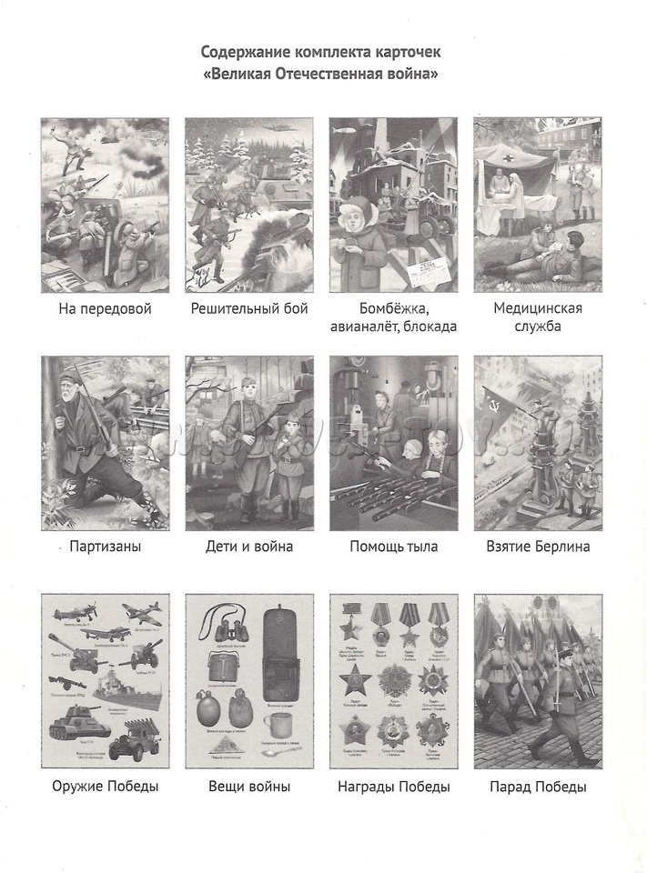 Это учебное пособие включает в себя 12 красочно оформленных наглядных материалов, которые предназначены для совместного изучения детьми и их родителями. Оно поможет вам погрузиться в атмосферу Великой Отечественной войны, раскрывая ключевые события тех лет, повседневную жизнь в военное время, а также обмундирование и награды героев. Вы познакомитесь с реальными историями как детей, так и взрослых, которые проявили мужество и героизм.