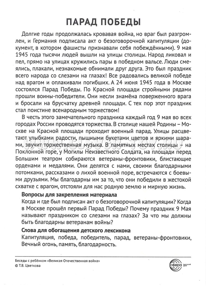 Беседы с ребенком. Великая Отечественная Война (12 картинок с текстом на обороте, в папке, А5) - 2-е издание, исправленное.