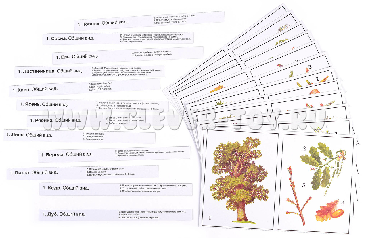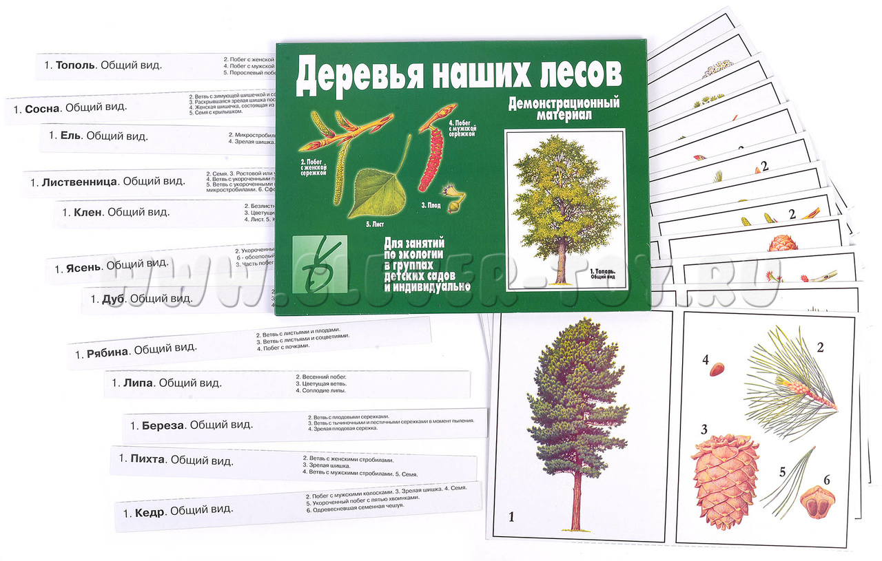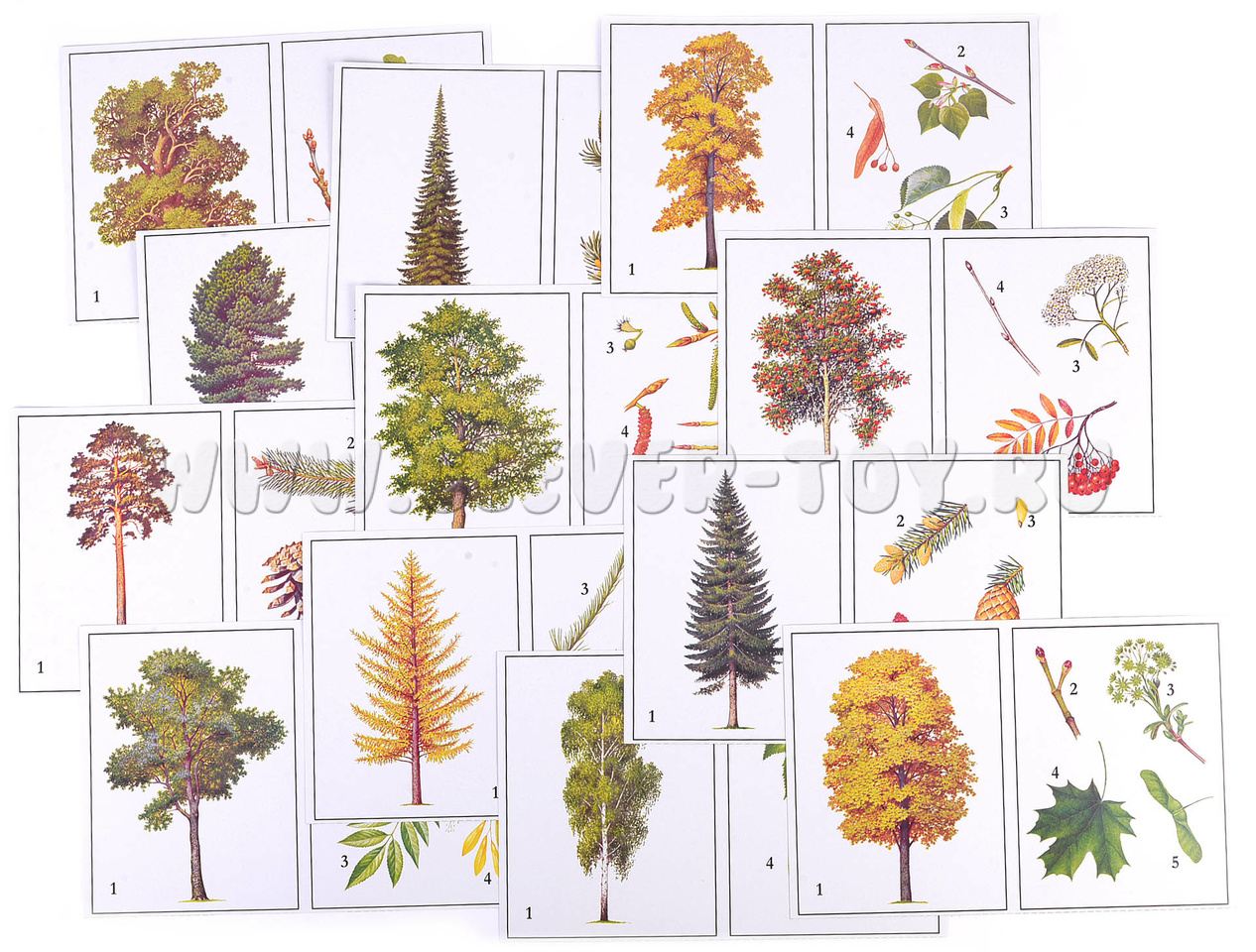 Вашему вниманию предлагается демонстрационный материал по экологии. На карточках изображены деревья и их части. Данный демонстрационный материал подходит для занятий в группах детского сада и индивидуально. Предварительно необходимо разрезать карточки по пунктирным линиям.